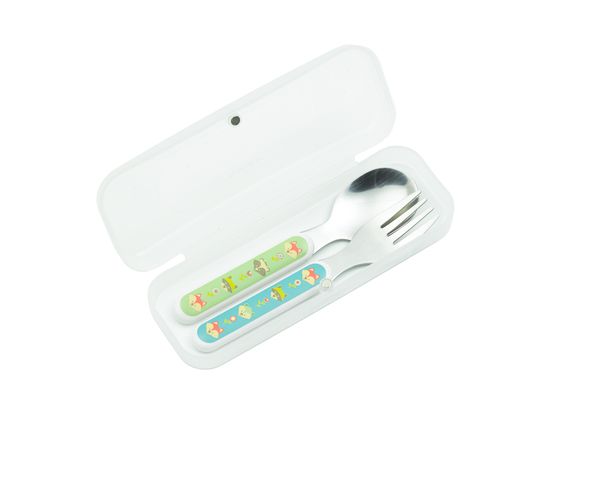 Silberbesteck (Gabel + Löffel) Was hat der Fuchs gegessen- 5,5 X 14cm - rostfreier Stahl + ABS-Kunststoff - ungiftig - bleifrei - BPA-frei - spülmaschinenfest