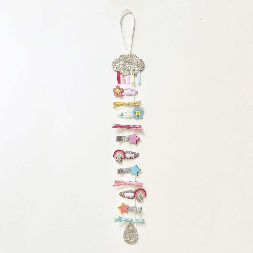 Die perfekte Lösung, um Haarspangen an einem Ort aufzubewahren und zu organisieren - unser Spangenbügel hat eine Aufhängeschlaufe, die an eine Tür oder einen Wandhaken gehängt werden kann.