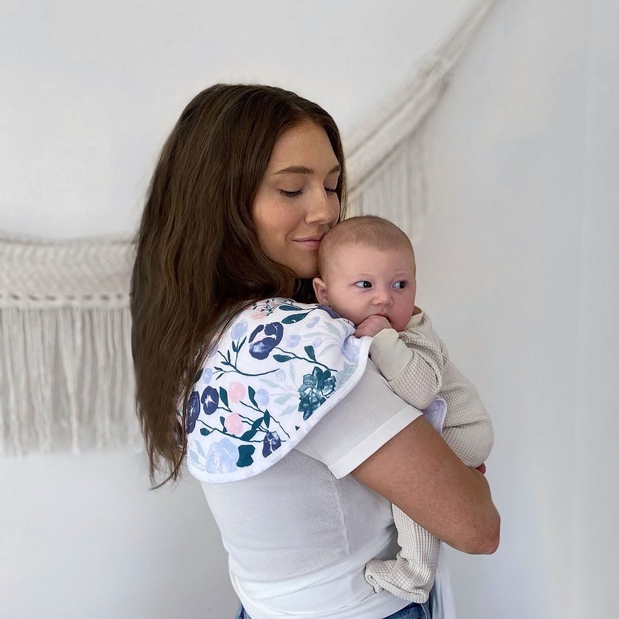 Das patentierte aden + anais™ Basics burpy bib Lätzchen wurde entwickelt, damit Sie und Ihr Baby sauber bleiben. Legen Sie es über die Schultern Ihres Kindes und schliessen Sie es am Rücken, um es als rundum abdeckendes Lätzchen zu verwenden, oder legen Sie es sich über die eigene Schulter, um es als rutschfestes Spucktuch zu verwenden.