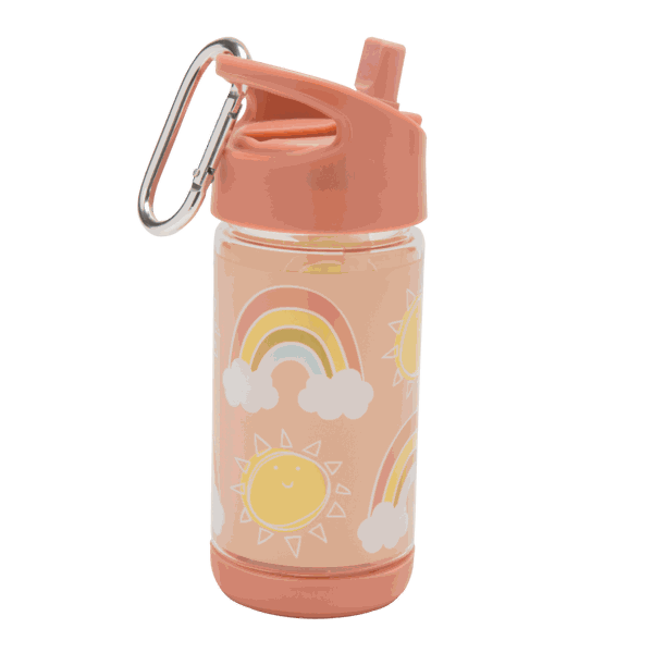 Die Flip & Sip Trinkflasche mit Regenbogen- und Sonnenscheinmotiv bringt gute Laune. Ideal für unterwegs.