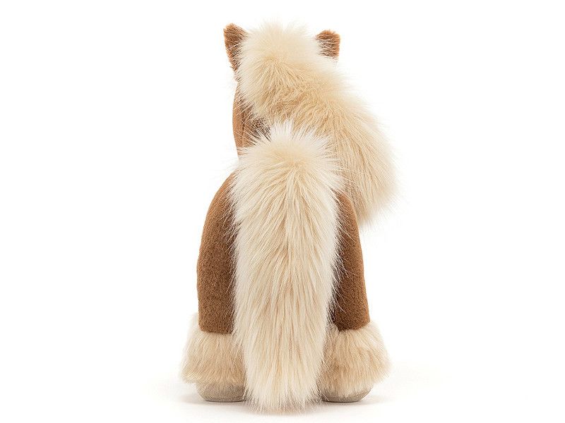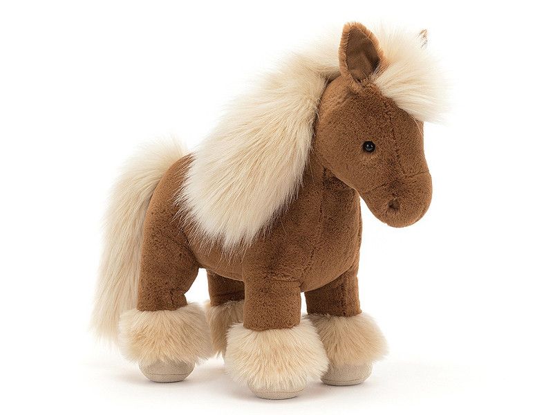 Das Plüschtier Pony "Freya" ist ein bezauberndes und kuscheliges Spielzeug, das perfekt für Pferdeliebhaber jeden Alters geeignet ist. Freya besticht durch ihr weiches Fell, das in sanften Braun- und Beigetönen gehalten ist, und ihre lebhaften, ausdrucksstarken Augen. Ihre Mähne und ihr Schweif aus seidigem Garn sind wunderbar flauschig und laden zum Streicheln ein. Dieses liebenswerte Pony trägt oft ein kleines Halfter oder eine Decke, die ihr einen zusätzlichen Charme verleihen. Ideal als treuer Kuschelfreund oder als dekoratives Element in einem Kinderzimmer, verspricht Freya langanhaltende Freundschaft und viele Abenteuer.