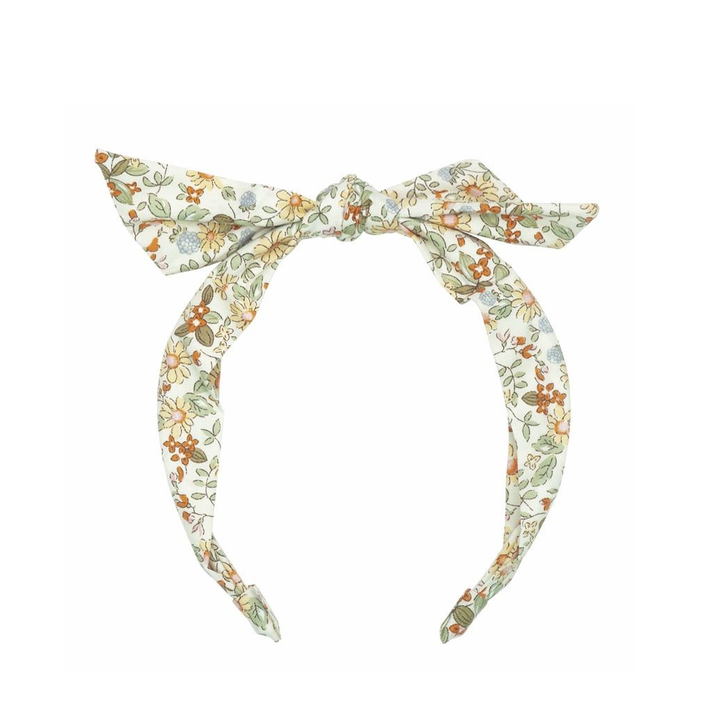 Ein wunderschönes Stirnband aus unserem herrlichen Brombeerblüten-Stoff, mit einem handgeknüpften Spitzenknoten, das für einen bequemen Sitz für kleine Köpfe sorgt.