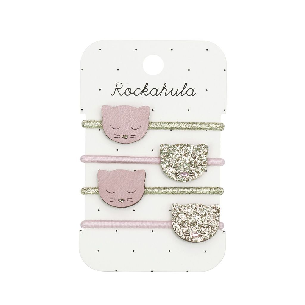 Dieses Viererpack Ponys ist die perfekte Art, den Tag ein wenig schimmern zu lassen! Zwei golden schimmernde Katzen und zwei rosa PU-Katzen, die an goldenen und rosa Gummibändern befestigt sind.