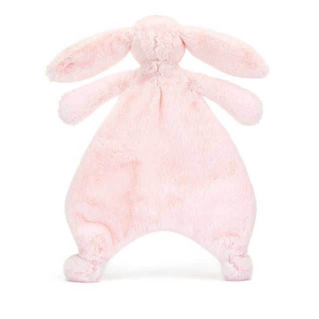 Das Bashful Silver Bunny Comforter ist unwiderstehlich weich und besteht aus farbigem Fell aus recycelten Fasern. Es hat die charakteristischen langen Schlappohren unseres geliebten Bashful Bunny, eine Nase aus rosa Veloursleder und gestickte Augen.