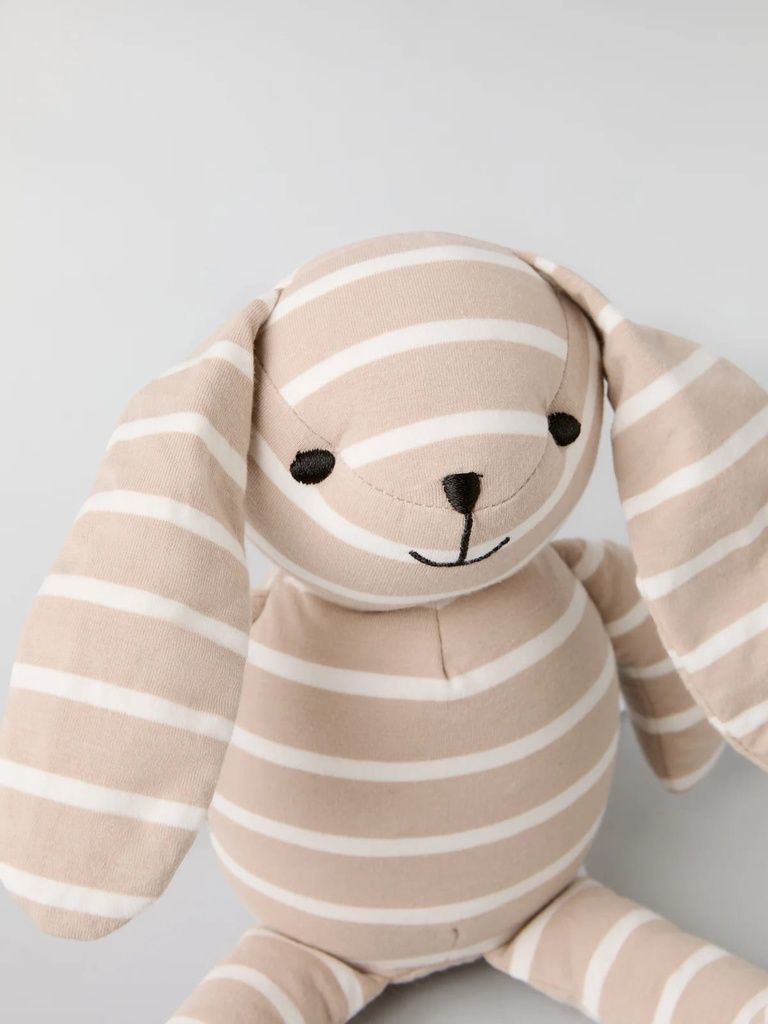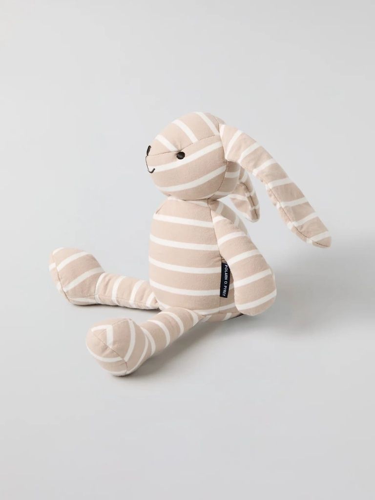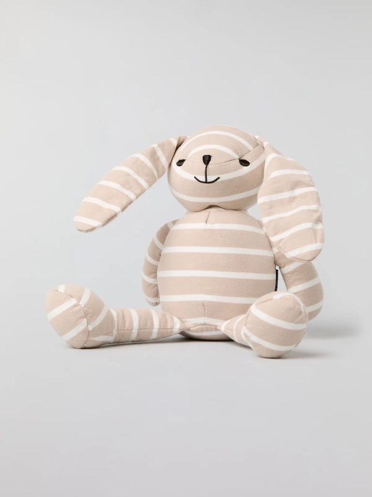 Weicher Plüschhase aus Bio-Baumwolle mit unseren klassischen Streifen – ein perfekter erster Kuschelfreund! 31 cm hoch. Produktsicherheit: KEEP AWAY FROM FIRE