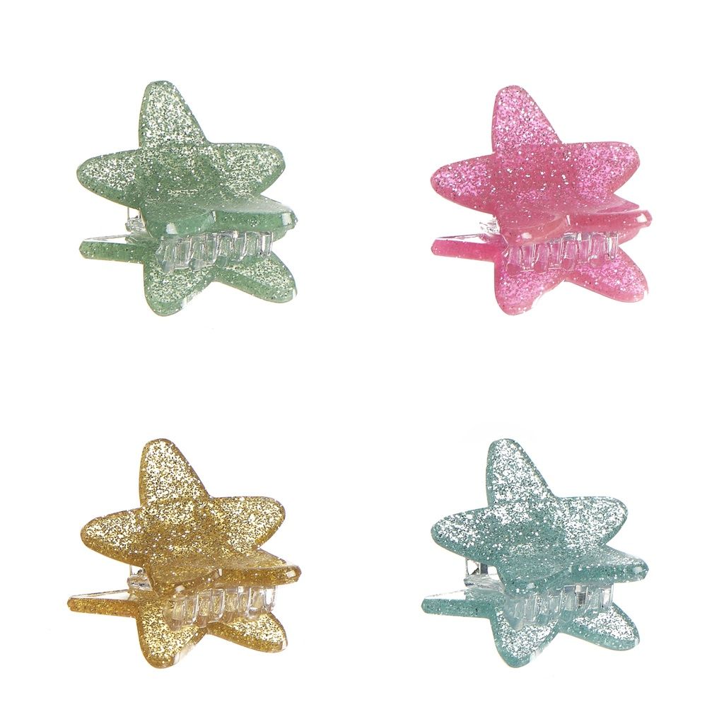 Speziell für kleine Köpfe entworfen, bringt dieses Set aus vier glitzernden Mini-Sternclips Farbe und Freude in jedes Hairstyling! Gefertigt aus funkelndem, buntem Acetat mit kleinen Zähnchen, die das Haar sicher halten - egal ob einzeln getragen oder alle zusammen für extra Glanz.