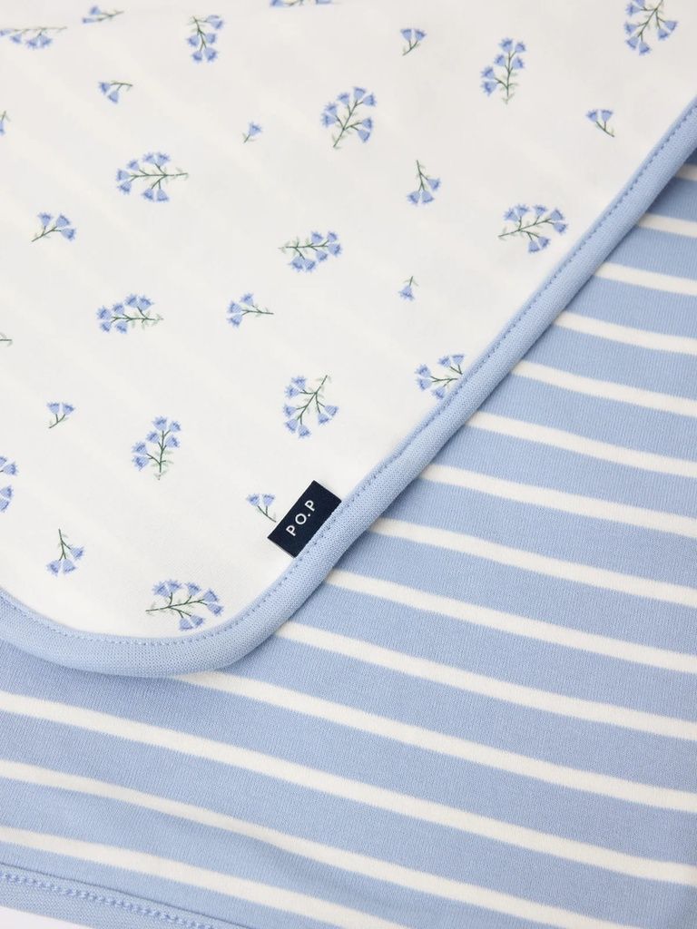 Diese weiche und kuschelige Babydecke aus Bio-Baumwolle ist ein geliebter Klassiker für die ersten Lebensmonate. Sanft zur empfindlichen Babyhaut, eignet sie sich ideal für den Kinderwagen, das Bettchen oder gemütliche Stunden zuhause. Die Decke überzeugt mit einem hübschen Print auf der einen Seite und der klassischen Streifenoptik auf der anderen - beidseitig schön und vielseitig kombinierbar.