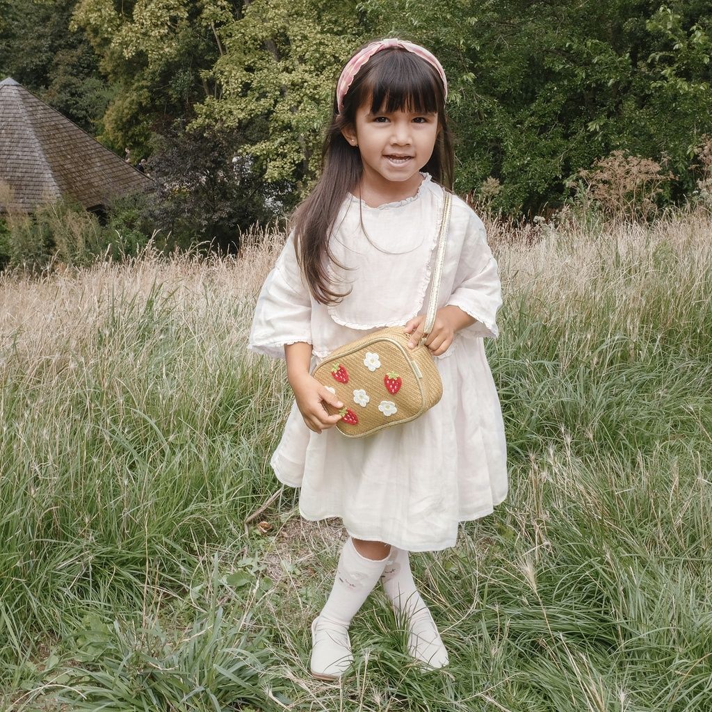 Für kleine Entdeckerinnen und Entdecker: Die Rockahula Bast-Handtasche begeistert mit weichem Bast, liebevollen Stickereien aus süssen Erdbeeren und zarten Gänseblümchen und einem verspielten, sommerlichen Look.