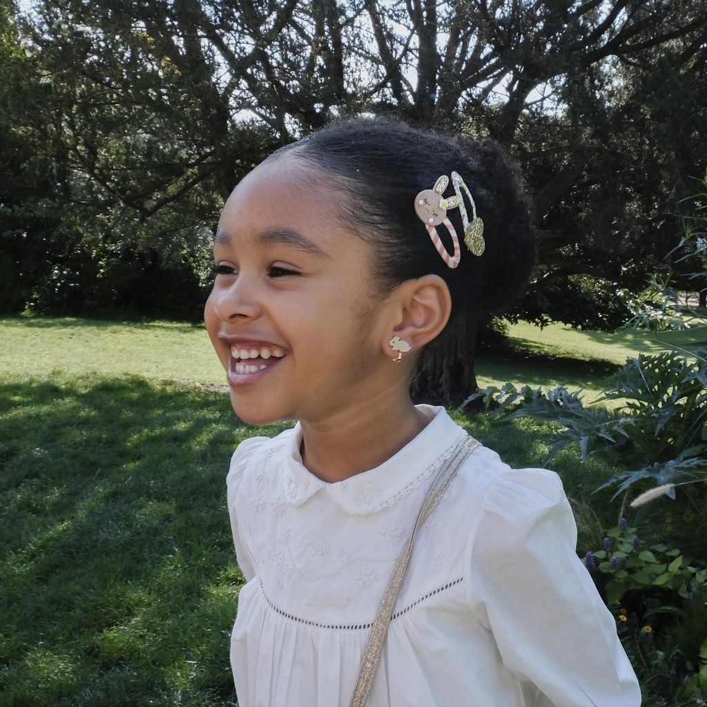 Verleihen Sie dem Tag einen Hauch von Frühling! Das Rockahula Clip-Ohrringe Set enthält vier liebevoll gestaltete Motive: Hase, Marienkäfer, Gänseblümchen und Erdbeere. Die fröhlichen Designs bringen Farbe und Freude in jedes Outfit und sind perfekt für kleine Frühlings- und Sommerabenteuer.