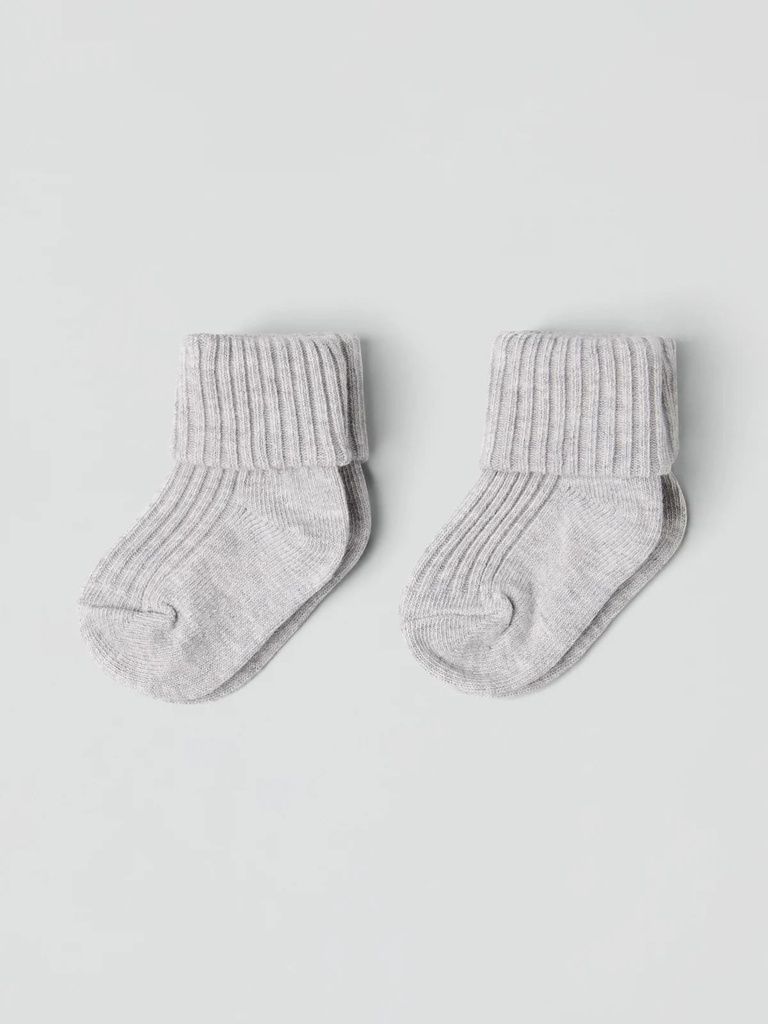 Hier kommen zwei Paar einfarbiger Söckchen aus weicher Bio-Baumwolle für Babys zum Auffüllen der Sockenschublade. Die Söckchen haben weiche Bündchen zum Umschlagen, die nicht kratzen.