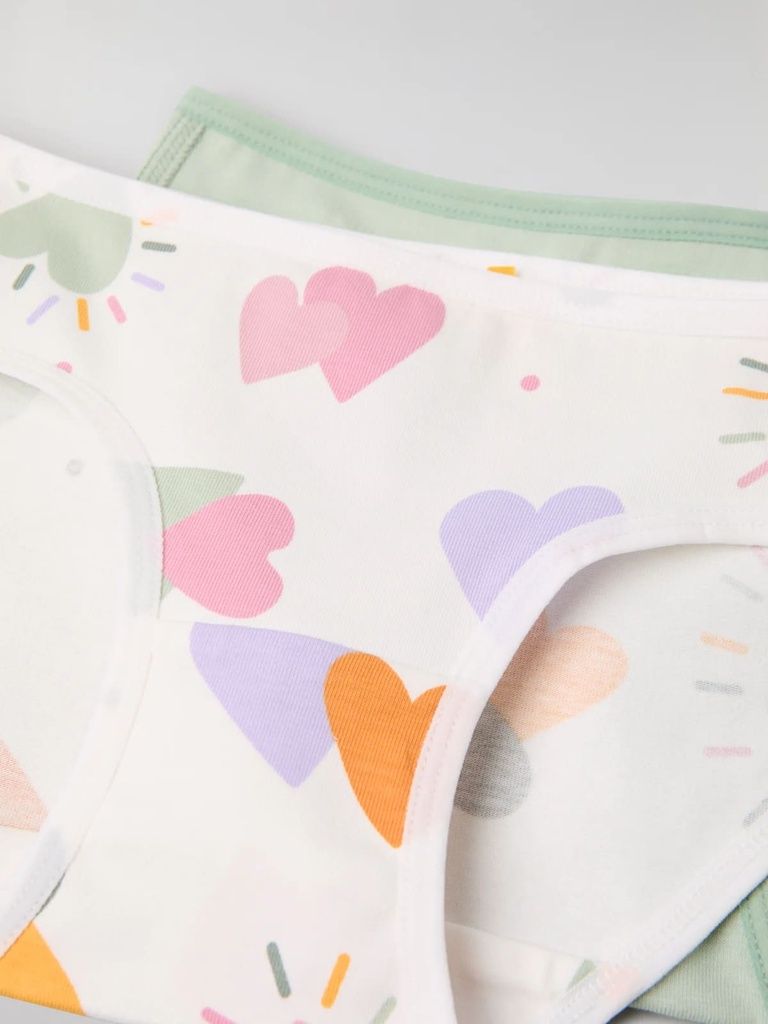 Unterhose aus weicher Bio-Baumwolle, durchgehend mit Herzen bedruckt. Das Höschen ist dank besonders weicher Nähte wunderbar sanft zur Haut.
