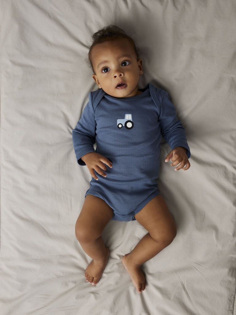 Das Hauptmaterial besteht zu mindestens 50 % aus Bio-Baumwolle. Diese wird ohne schädliche Chemikalien angebaut - das schont Ressourcen, schützt die Artenvielfalt und ist besonders sanft zur empfindlichen Babyhaut.