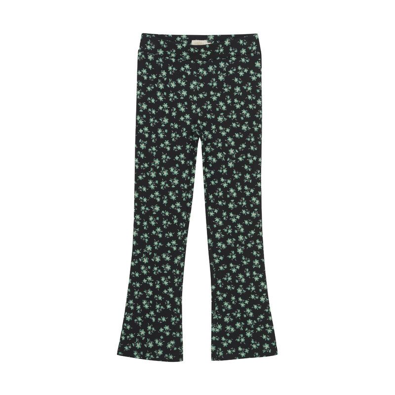 Wunderschöne Hose mit Allover-Print von Creamie in Schwarz mit kleinen feinen grünen Blumen. Die Hose besteht aus weichem Material, das angenehm zu tragen ist.