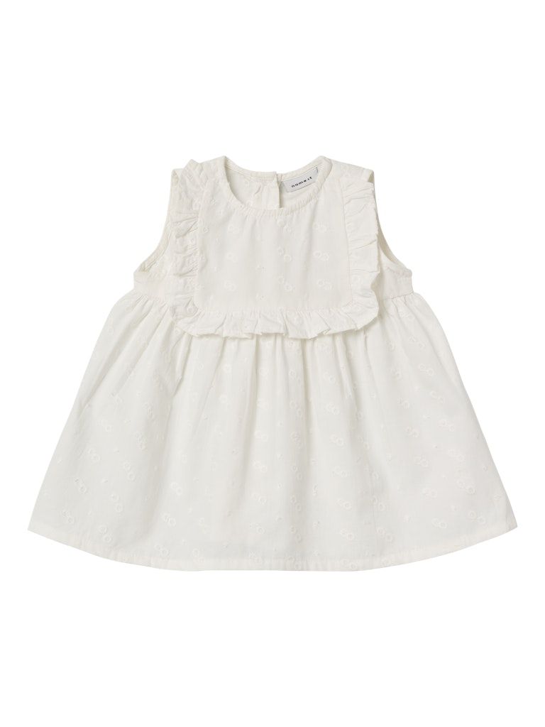 Ärmelloses Kleid aus 100% Baumwolle, mit markantem Gittermuster und fein strukturierter Oberfläche für einen klassischen Look. Mit Rundhalsausschnitt, Knopfverschluss, Rüschendetails, knielang und in Regular Fit.