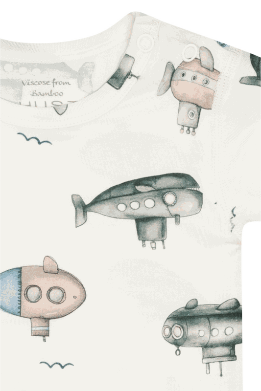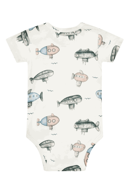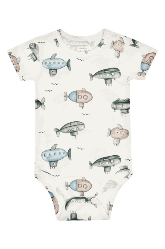 Das kurzärmlige Design bietet maximale Bewegungsfreiheit und angenehmen Tragekomfort an warmen Tagen. Der verspielt-maritime U-Boot-Print verleiht dem Body einen charmanten Look und macht ihn zu einem liebevollen Highlight in der Baby-Garderobe.