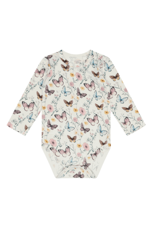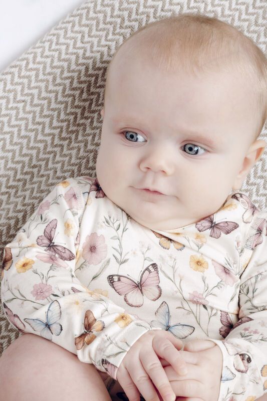 Der verspielte Schmetterling-Print macht den Body zu einem echten Hingucker und bringt Freude in den Alltag. Hergestellt aus 95% Viskose von Bambus und 5% Elastan, überzeugt er zudem durch robuste Verarbeitung und Langlebigkeit, sodass er viele Waschgänge mühelos übersteht. Nachhaltig produziert ist dieser Body die zuverlässige Wahl für anspruchsvolle Eltern, die Wert auf Komfort und Umweltbewusstsein legen.