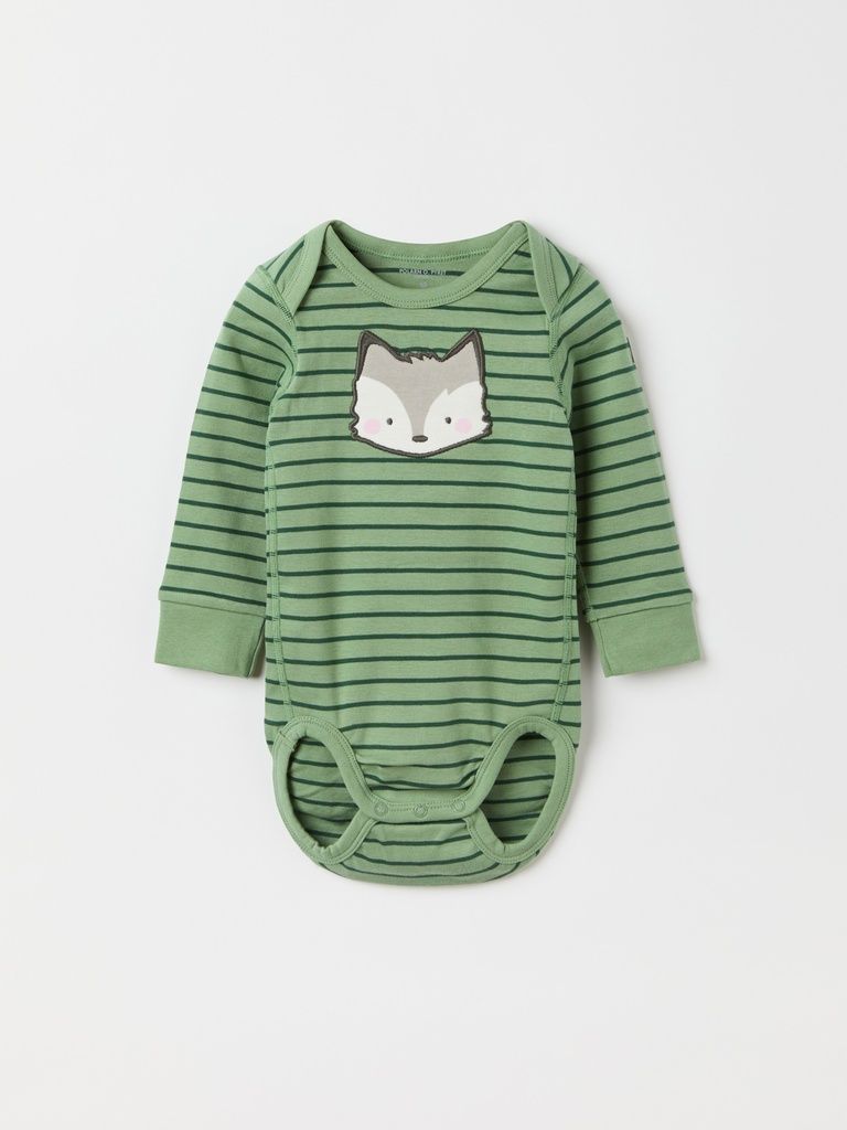Baby-Langarmbody mit Wolf Applikation Bio-Baumwolle