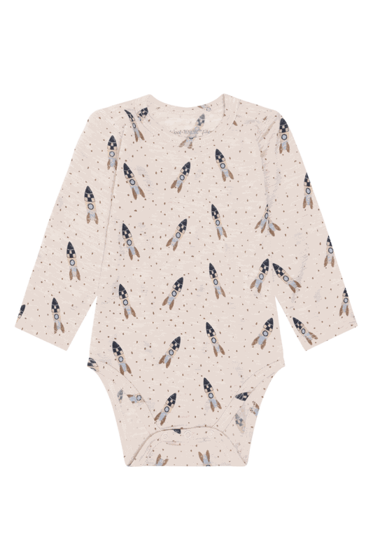 Das kindgerechte Raketenmuster verleiht dem Body einen verspielten Look, während die hochwertige Verarbeitung beste Qualität, Langlebigkeit und Funktionalität garantiert. Ein praktisches und stilvolles Kleidungsstück, das kleine Entdecker den ganzen Tag begleitet.
