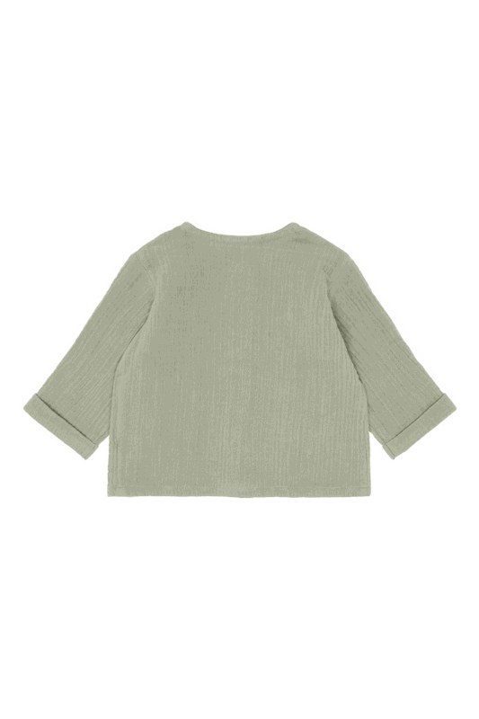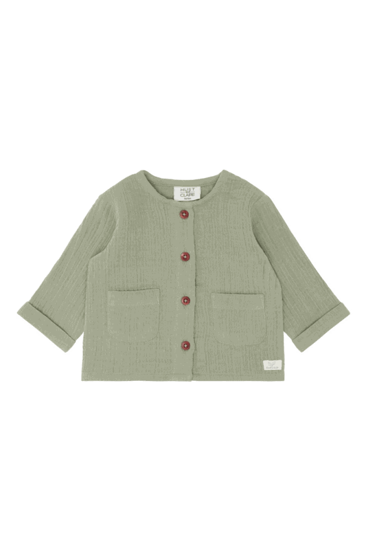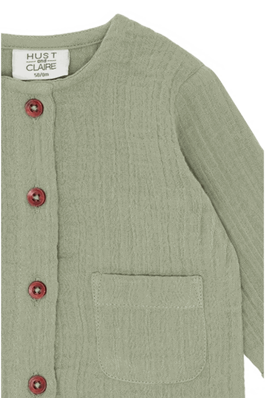 Die faltige Struktur verleiht der Jacke eine elegante, verspielte Note, während die praktische Tasche auf der linken Seite Platz für kleine Schätze bietet. Ganz im Stil von HUST & CLAIRE kombiniert dieses Kleidungsstück Nachhaltigkeit mit funktionalem, kindgerechtem Design.