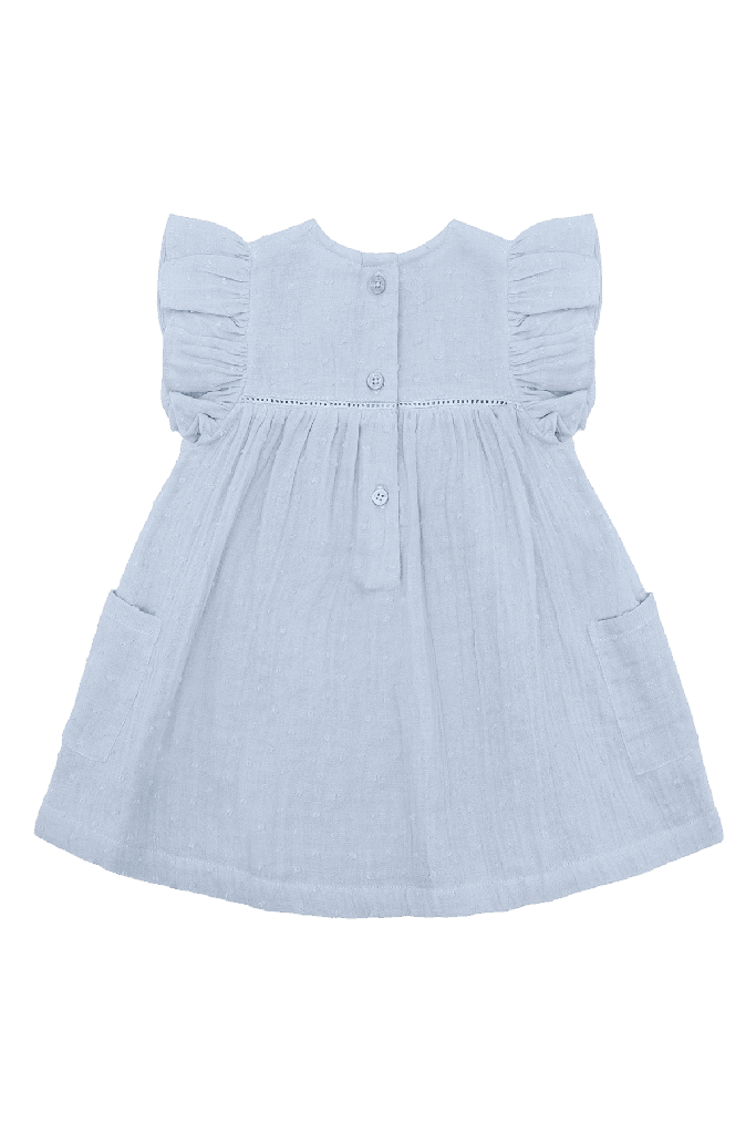 Die verspielte Blumenstickerei und die Rüschenärmel verleihen dem Kleid einen charmanten Look, während der klassische runde Ausschnitt für angenehmes An- und Ausziehen sorgt. Ob für Familienfeste, Geburtstagsfeiern oder einfach zum Spielen im Alltag - dieses Kleid vereint Stil und Bequemlichkeit auf elegante Weise.