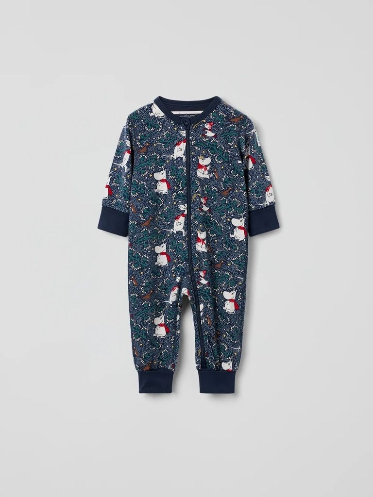 Feiern Sie das 80-jährige Jubiläum der Mumintrolle mit diesem liebevoll gestalteten Schlafanzug-Einteiler aus weicher Bio-Baumwolle. Der Overall ist rundum bedruckt mit Illustrationen aus Tove Janssons Mumintroll-Geschichten und bringt den Zauber der beliebten Figuren direkt ins Kinderzimmer.