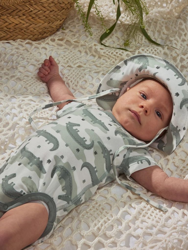 Baby-Sonnenhut mit Bindeband Krokodil-Print