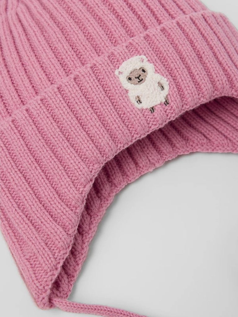 Diese gerippte Kinder-Mütze aus einer weichen Mischung aus Wolle und Baumwolle hält Ihr Kind angenehm warm. Das Umschlagbündchen ist mit einer kleinen süssen Applikation vorne verziert und die Mütze reicht etwas über die Ohren, sodass zusätzliche Wärme und Komfort gewährleistet sind. Mit den praktischen Bindebändern sitzt die Mütze sicher und verrutscht nicht.