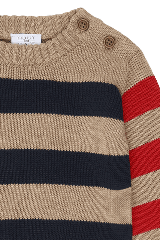 Der Feinstrick-Pullover von Hust & Claire ist ein gemütlicher Alltagsbegleiter für Kinder - weich, praktisch und stilvoll. Mit seinen Blockstreifen bringt er frische Farben in die Garderobe und lässt sich vielseitig kombinieren.