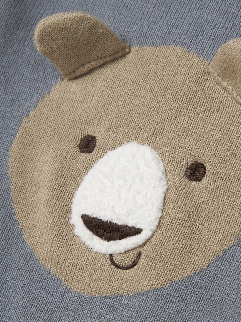Der Pullover kombiniert praktische Details mit modernem Design: Der Knopfverschluss erleichtert das An- und Ausziehen, während die 3D-Stickerei einen liebevollen Akzent setzt. Dank der Regular Fit-Passform und der weichen Bio-Baumwolle trägt er sich angenehm und sorgt für Bewegungsfreiheit im Alltag.