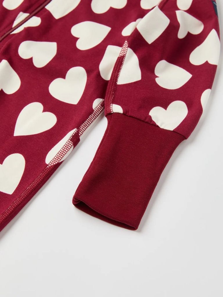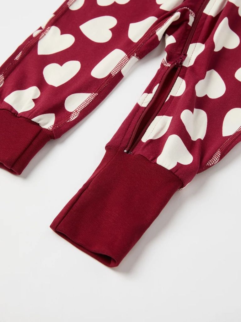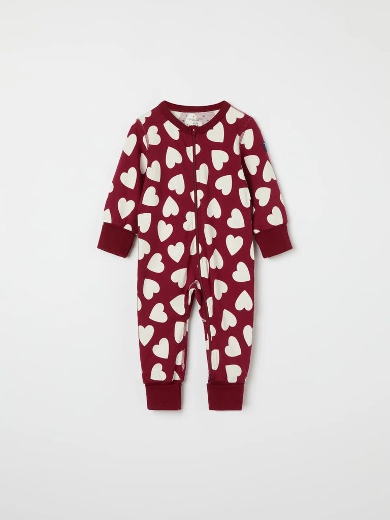 Schlafoverall aus weicher Bio-Baumwolle mit besonders weichen, flachen Nähten, die sanft zu empfindlicher Haut sind. Der Overall ist durchgehend mit Herzchen bedruckt.