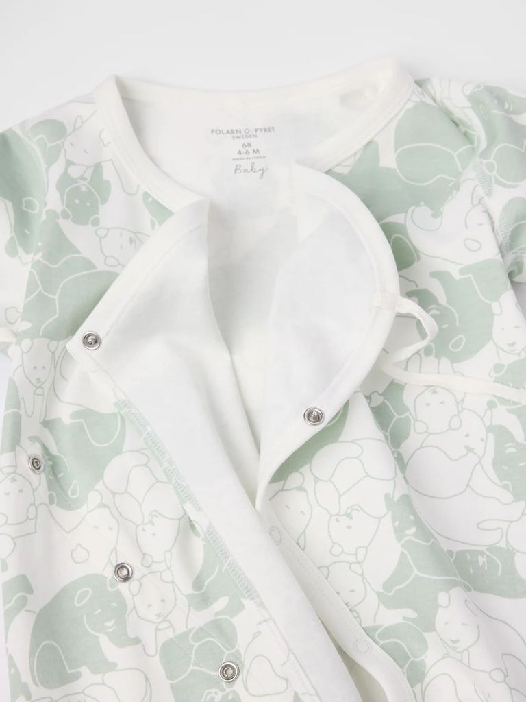 Dieser weiche Wickeloverall aus 100 % Bio-Baumwolle ist wie gemacht für kuschelige Tage zu Hause. Der zarte Eichenlaub-Print sorgt für einen liebevollen Look, während besonders weiche, flache Nähte empfindliche Babyhaut sanft umschmeicheln. Umschlagbare Ärmel- und Beinbündchen bieten zusätzlichen Schutz und Wärme - perfekt für kleine Entdeckerinnen und Entdecker. Das Band unter dem Ärmel lässt sich zu einer hübschen Schleife binden. Dank der praktischen Druckknöpfe entlang der überlappenden Öffnung gelingt das An- und Ausziehen ganz einfach.