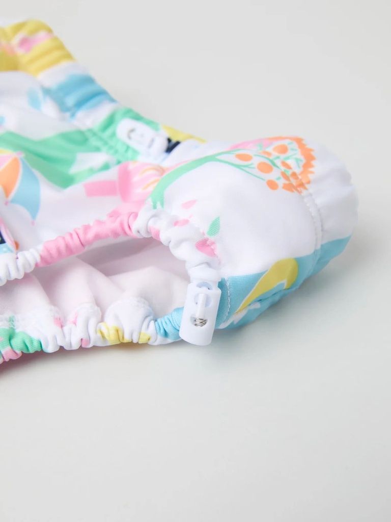 Diese niedliche Schwimmwindel ist der perfekte Begleiter für das Babyschwimmen oder den ersten Badeausflug! Sie besteht aus recyceltem Material, ist weich gefüttert und hält kleine Missgeschicke sicher zurück. Der bequeme Gummizug an den Beinausschnitten ist verstellbar, sodass nichts verrutscht. Ein elastischer Bund mit Bindeband an der Innenseite sorgt für einen optimalen Sitz.