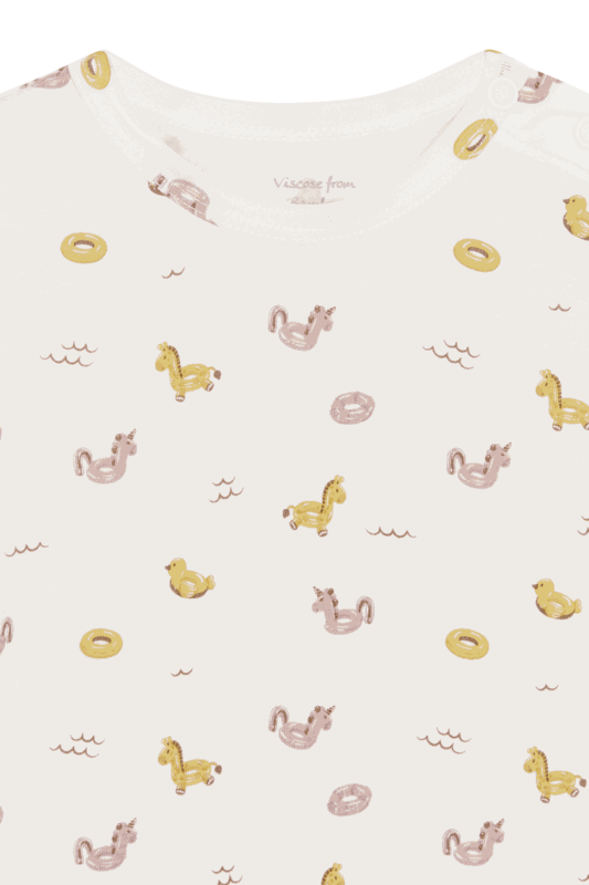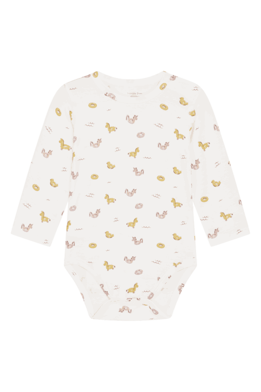 Langarmbody aus weicher, dehnbarer Viskose aus Bambus mit einem Print. Es ist an der linken Schulter und zwischen den Beinen mit Knopfverschlüssen ausgestattet.