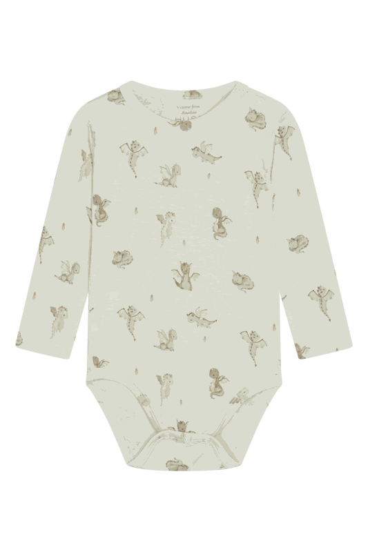 Bambus Langarmbody mit Drachenprint