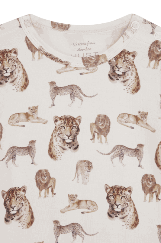 Bambus Langarmbody mit Wildkatzen-Print