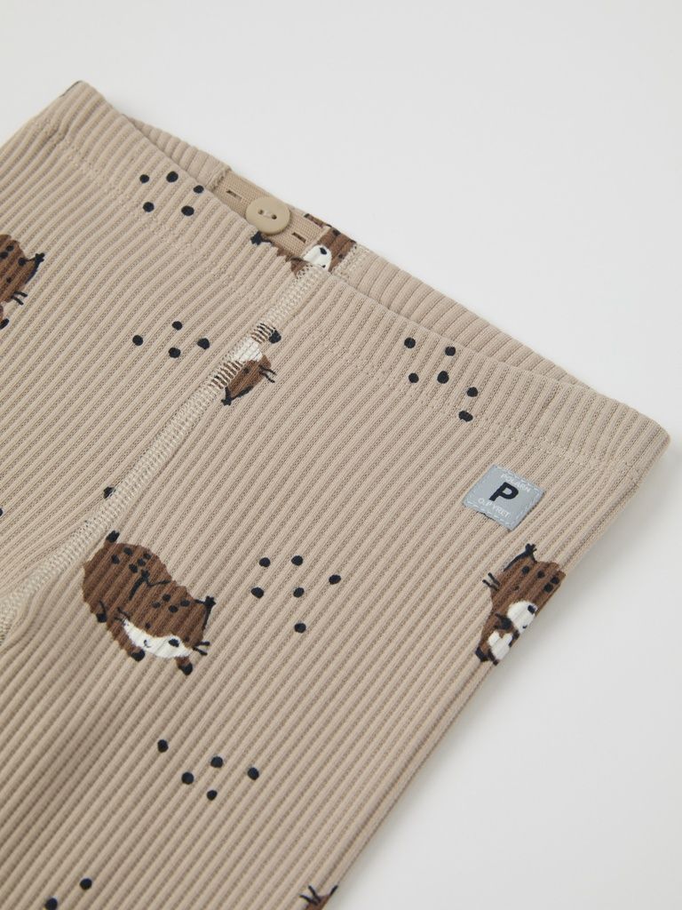 Die gerippte Hose aus weicher Bio-Baumwolle für Babys ist durchgehend mit kleinen Luchsen bedruckt.