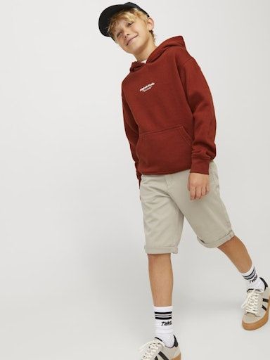 Die Chino-Shorts von Jack & Jones Junior bieten die perfekte Balance zwischen schicker Eleganz und lässiger Coolness. Inspiriert von der Erwachsenenmode, kombiniert dieses Modell klassische Elemente mit jugendlichem Charme – ideal für Jungen im Alter von 3 bis 16 Jahren.