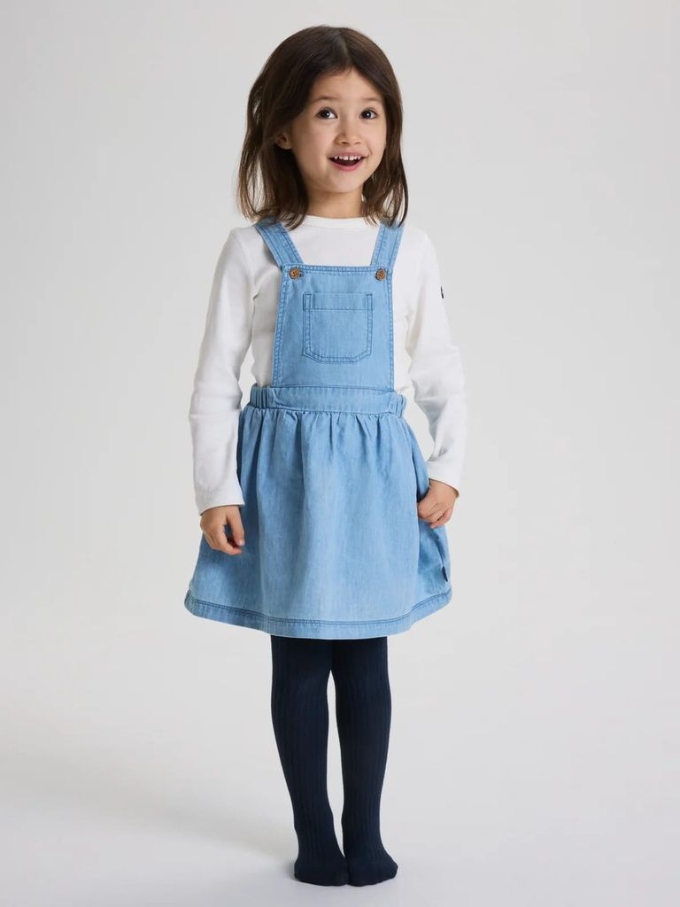 Schöner Frühlingsfavorit: Dieses leichte Latzkleid aus Chambray (100 % Bio-Baumwolle) ist ideal für Alltag und besondere Anlässe. Schmale Träger mit Knopfverschluss, eine betonte Taille und ein geraffter Rockteil sorgen für einen verspielten, femininen Look.