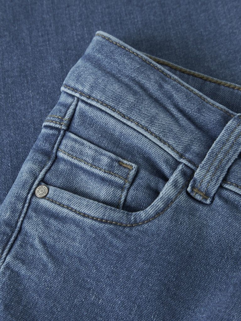 Der robuste Denimstoff sorgt für Langlebigkeit und einen charakteristischen Stil, während leichte Abnutzungserscheinungen der Jeans eine lässige, trendige Note verleihen. Die Mid-Waist-Taille sitzt angenehm und bietet gemeinsam mit dem verstellbaren Bund optimalen Tragekomfort - ideal für aktive Kinder im Alltag.