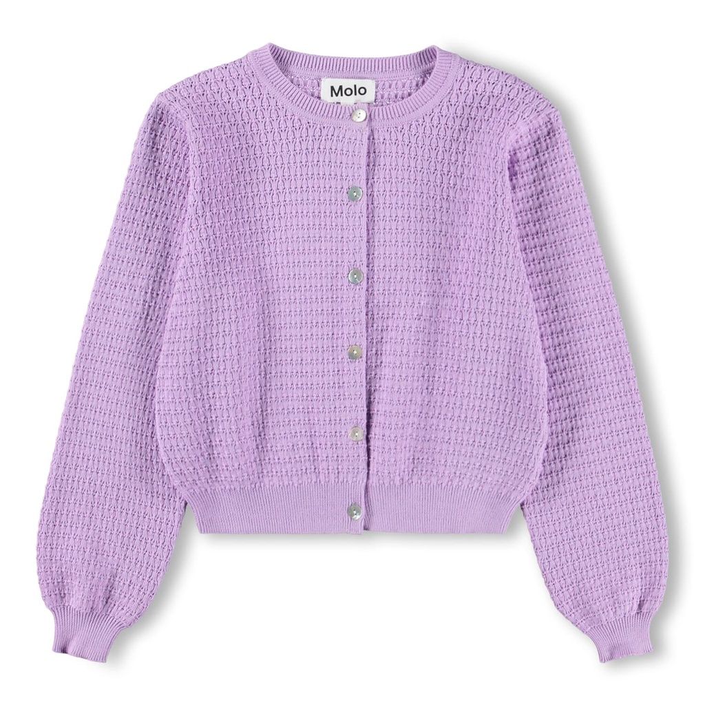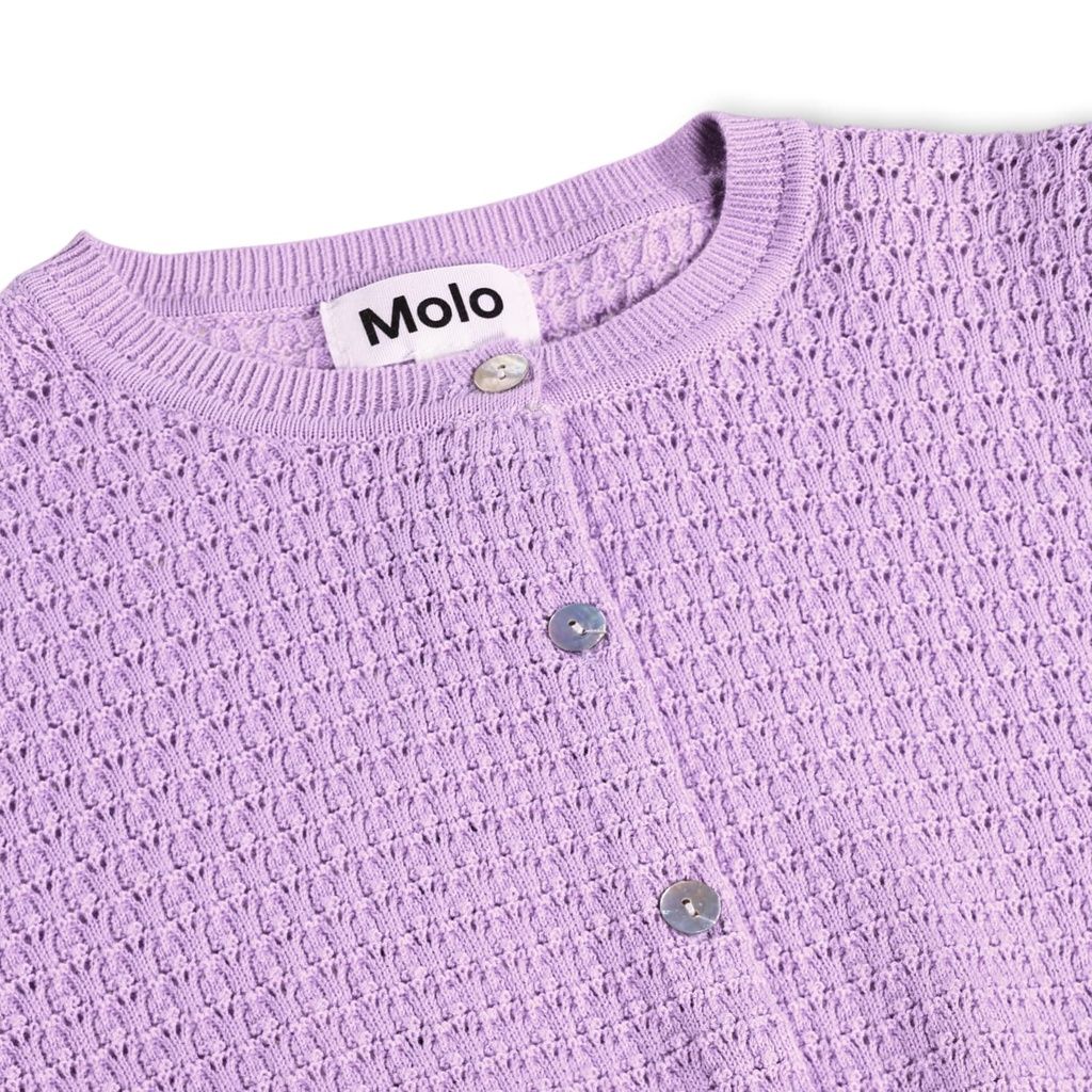 Diese Strickjacke von Molo vereint zeitloses Design mit hohem Tragekomfort. Gefertigt aus weicher Bio-Baumwolle, fühlt sie sich angenehm auf der Haut an und ist ideal für kühlere Tage oder als leichte Zusatzschicht.