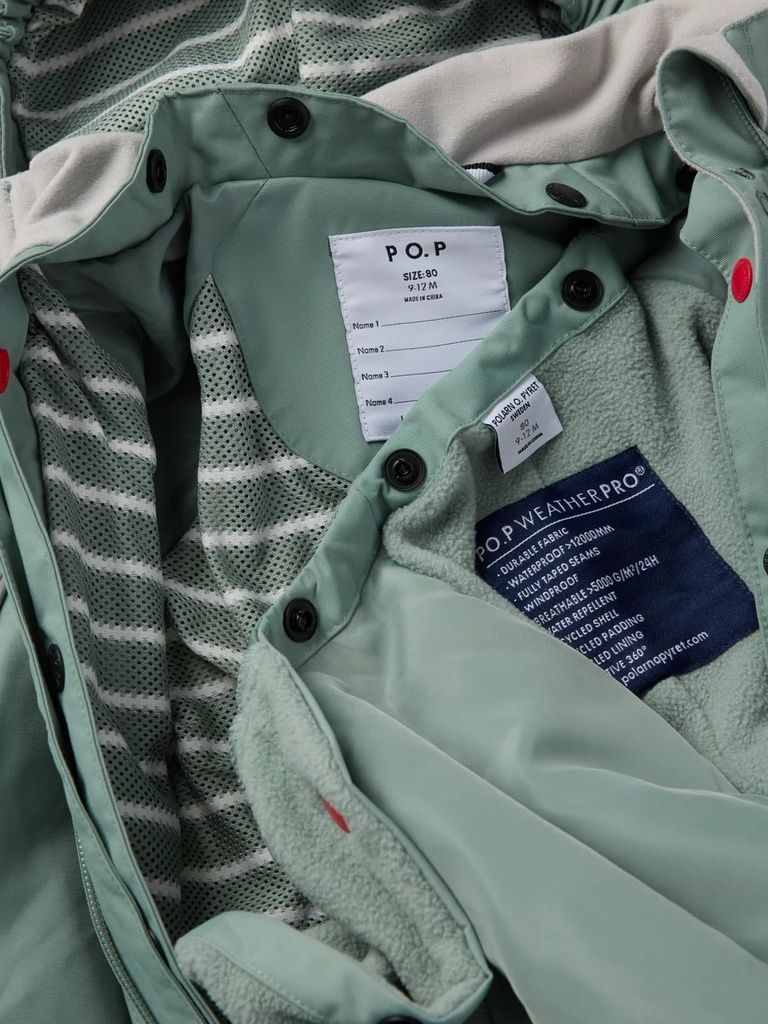 Mit PO.P WeatherPro® gekennzeichnet - garantiert Strapazierfähigkeit, Wasserdichtigkeit, Atmungsaktivität und Kindersicherheit bei allen Outdoor-Abenteuern.
