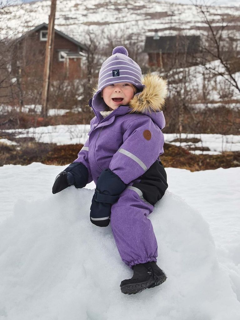 Bei diesem Modell ist der Gesässbereich extra verstärkt und mit Fleece gefüttert, das angenehm wärmt, wenn Kinder auf dem Boden sitzen. Bund, Ärmel- und Beinabschlüsse sind elastisch und sorgen für eine bequeme Passform. Und die vorgeformten Ärmel und Hosenbeine garantieren ausreichend Bewegungsfreiheit. Die abnehmbare Kapuze ist regulierbar und hat einen abnehmbaren -Besatz aus Pelzimitat. In Grösse 86-104 ist der Flor des Pelzimitats etwas kürzer. Die Grössen 86–104 haben einen langen Reissverschluss, der bis über den Schritt reicht. Ab Grösse 110 reicht der Reissverschluss bis zum Schritt.