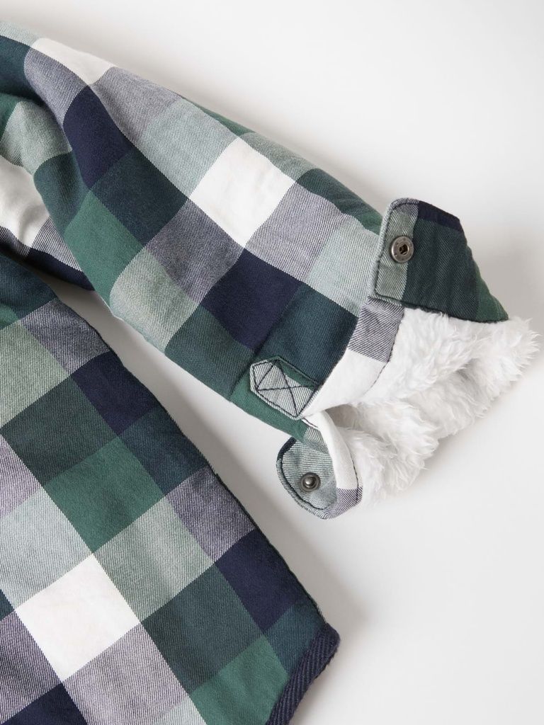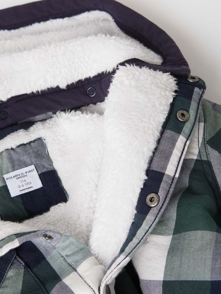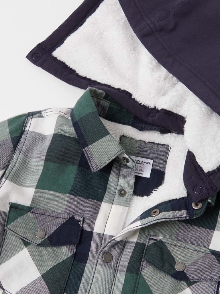 Das kuschelige Hemd mit Teddyfutter hält dein Kind an einem kühlen Herbsttag mollig warm. Es hat eine mit Teddyplüsch gefütterte, abnehmbare Kapuze, die mit Druckknöpfen befestigt wird.