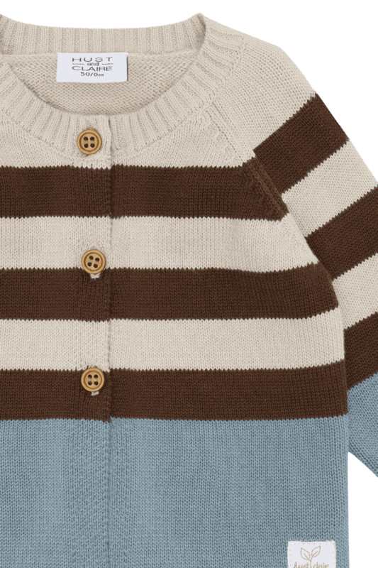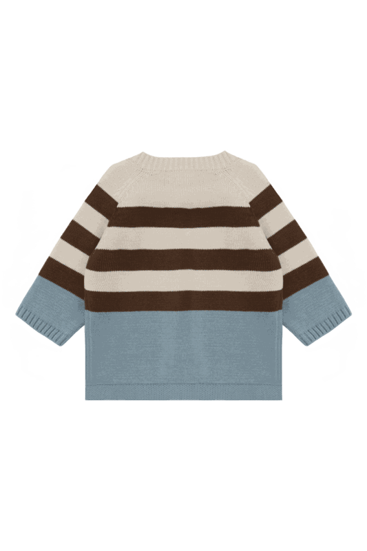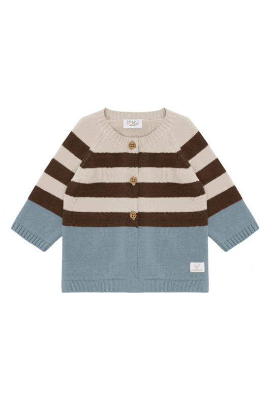 Diese gestrickte Strickjacke für Kinder ist aus weicher Baumwolle gefertigt und sorgt für angenehmen Tragekomfort im Alltag. Das klassische Streifenmuster macht sie zu einem zeitlosen Liebling im Kleiderschrank.