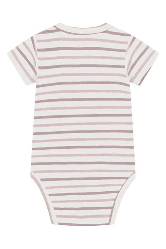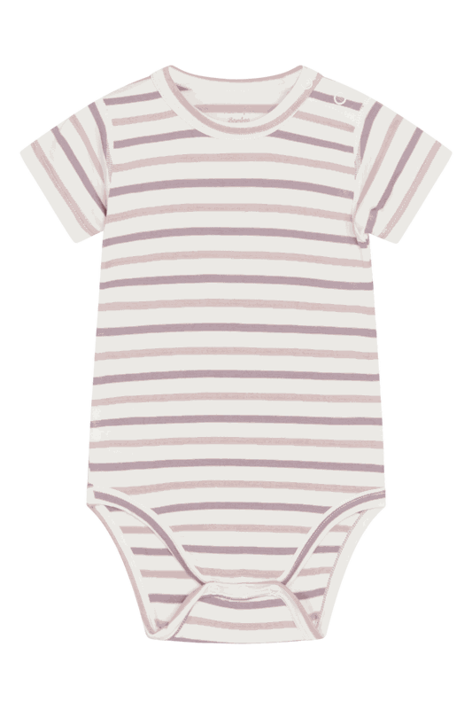 Kurzarmbody aus weicher, dehnbarer Viskose aus Bambus. Es ist an der linken Schulter und zwischen den Beinen mit Knopfverschlüssen ausgestattet.