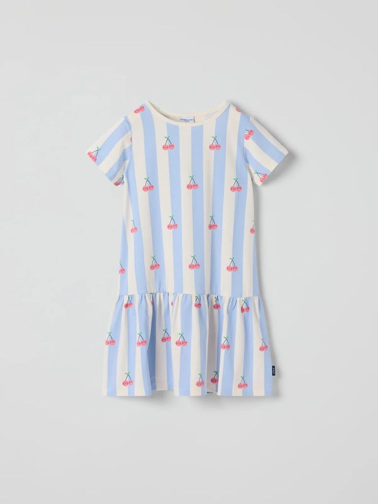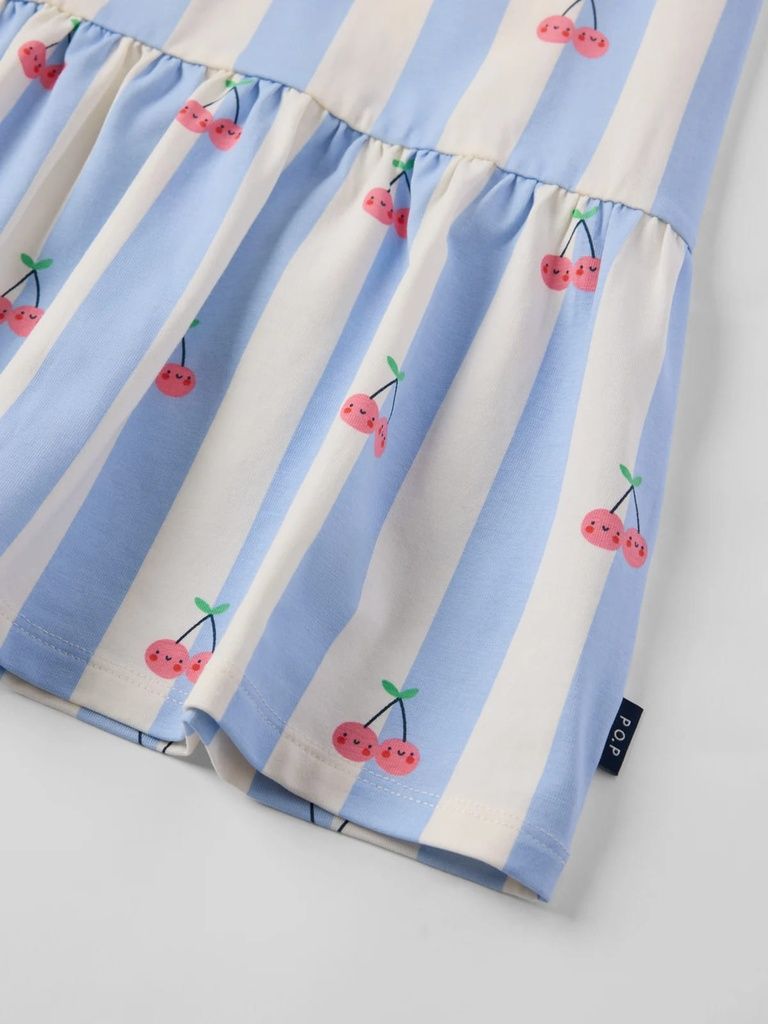 Gestreiftes Kurzarmkleid mit Kirschen-Print