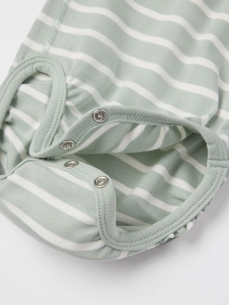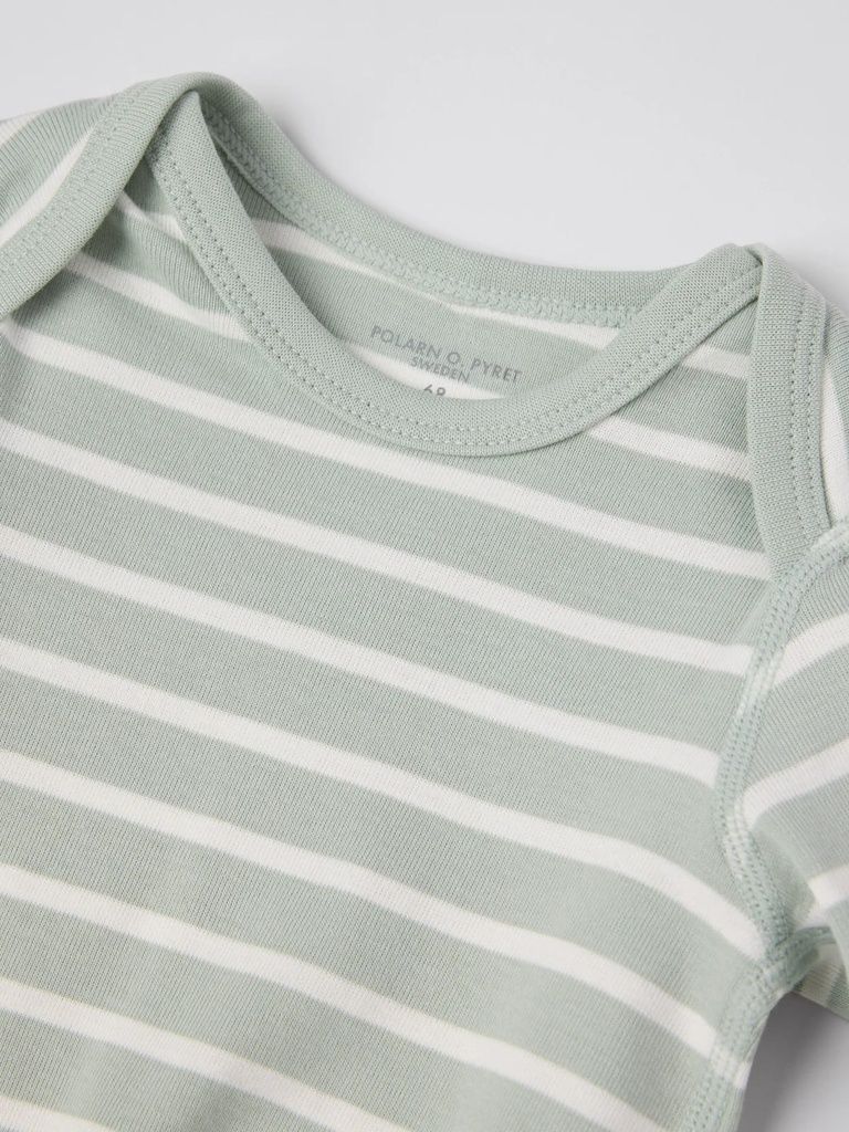 Klassiker in neuer Farbgebung - dieser tragefreundliche Body aus 100 % Bio-Baumwolle ist ein unverzichtbares Basic für die Babygarderobe. Das zeitlose Streifenmuster bringt frischen Charme, während das weiche Material sanft zur empfindlichen Haut ist.