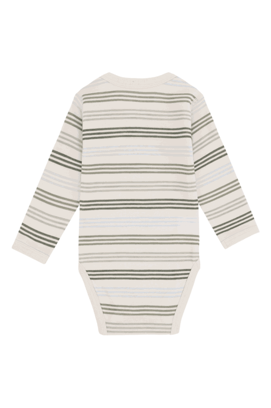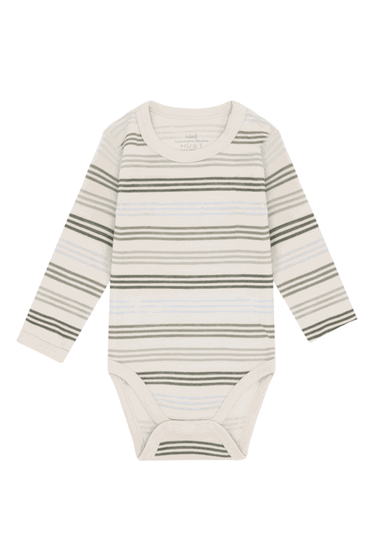 Unser langärmeliger Bodystocking vereint weiche, dehnbare Wolle aussen mit angenehmer Bambus-Viskose innen, ideal für empfindliche Kinderhaut. Das gestreifte Design sorgt für einen zeitlosen, verspielten Look. Druckknöpfe an der linken Schulter und im Schritt erleichtern das An- und Ausziehen erheblich.