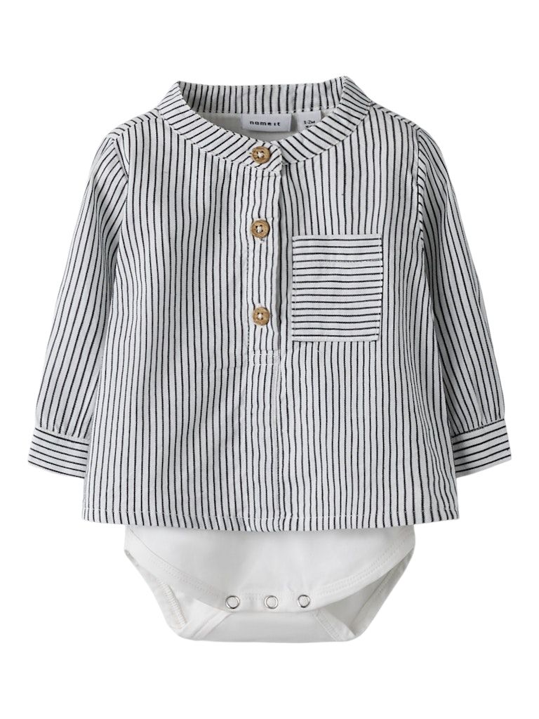 Der Hemdbody von name it baby vereint Stil, Komfort und Funktionalität in einem hochwertigen Baby-Basic. Das feine Gittermuster und die strukturierte Webware verleihen dem Body einen puren, klassischen Look - ideal für besondere Anlässe oder den Alltag.