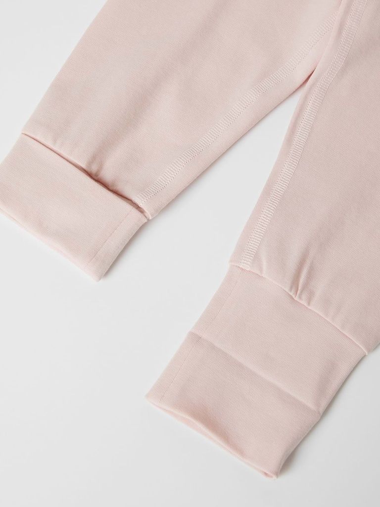 Weiche und bequeme Hose, die dank der extra langen Bündchen an Taille und Beinabschlüssen zum Umschlagen mit dem Baby mitwächst.